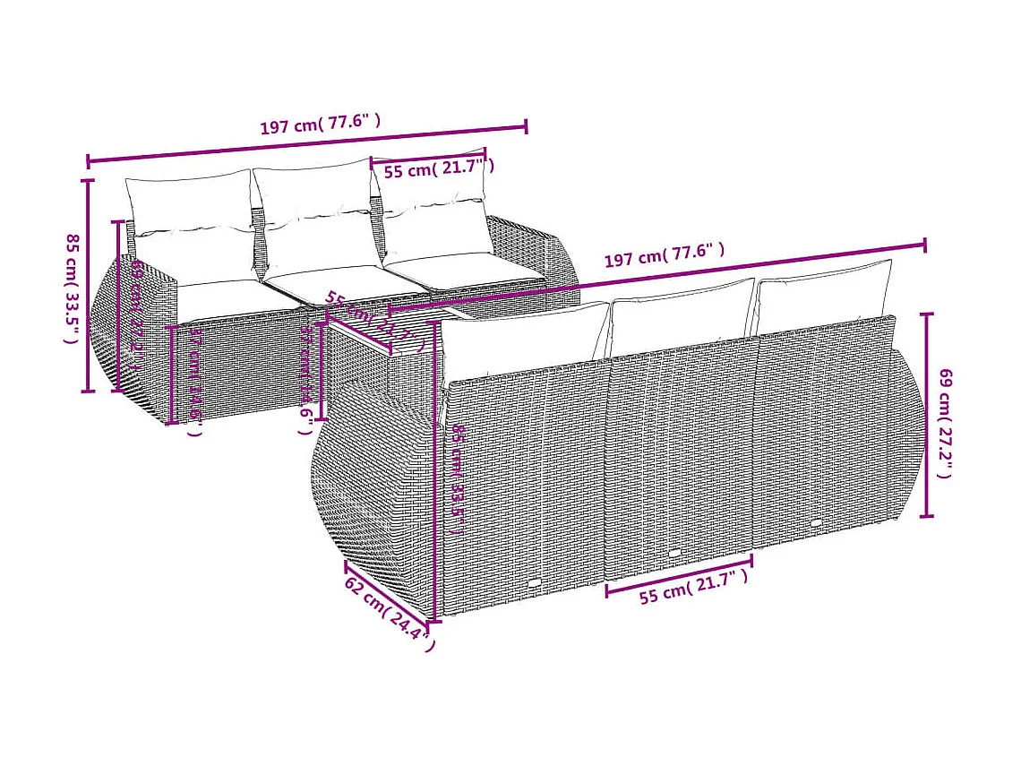 Salon de jardin avec coussins 7 pcs beige résine tressée