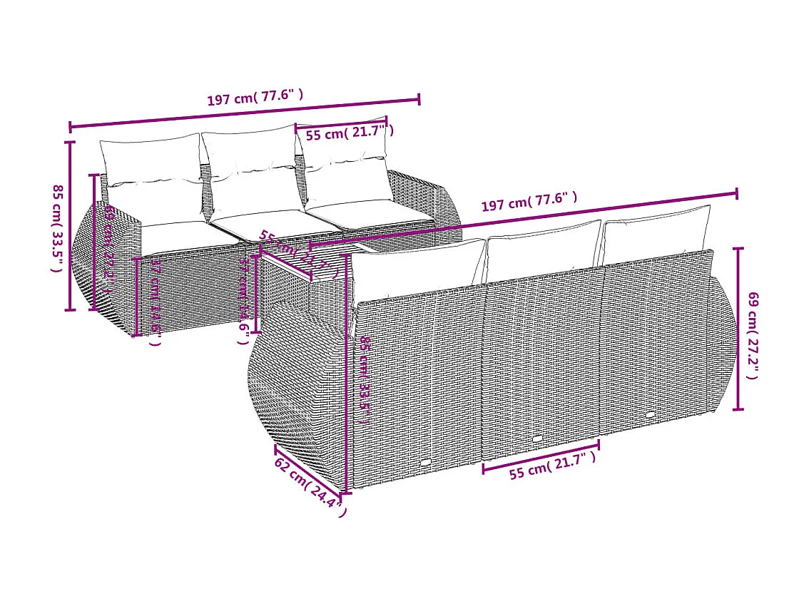 Salon de jardin avec coussins 7 pcs beige résine tressée