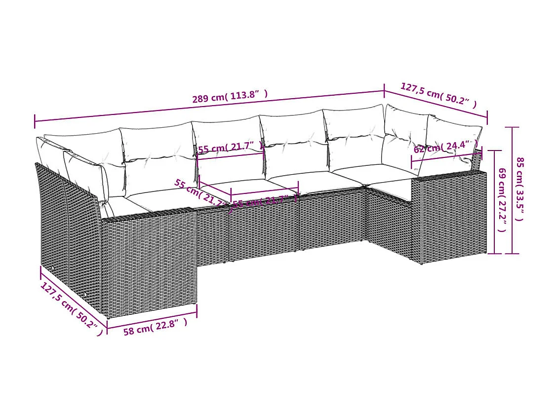 Salon de jardin avec coussins 7 pcs beige résine tressée