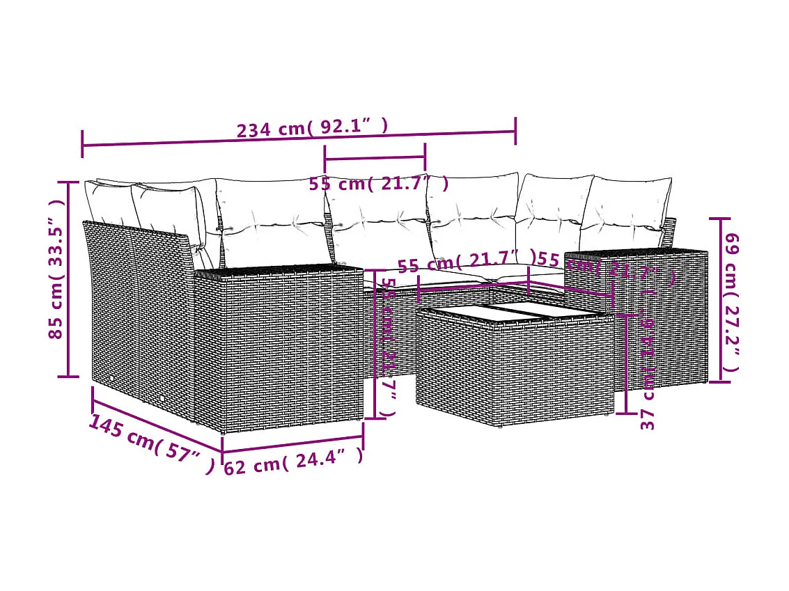 Salon de jardin avec coussins 7 pcs beige résine tressée