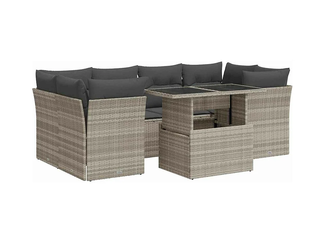Salon de jardin avec coussins 7 pcs gris clair résine tressée