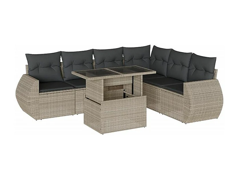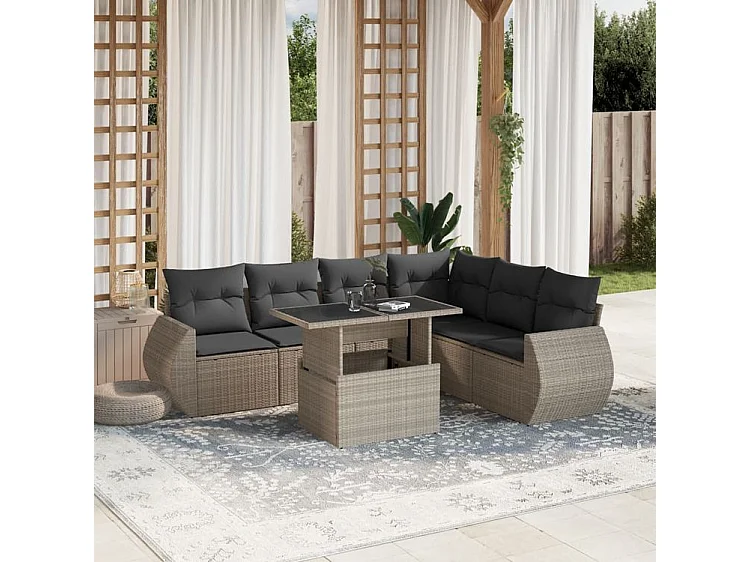 Salon de jardin avec coussins 7 pcs gris clair résine tressée