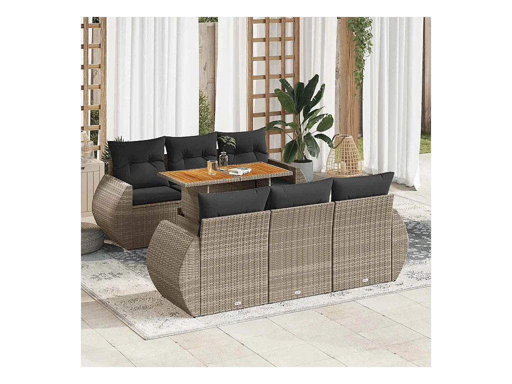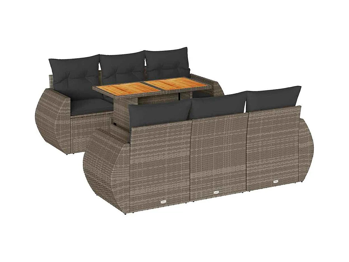 Salon de jardin avec coussins 7 pcs gris résine tressée