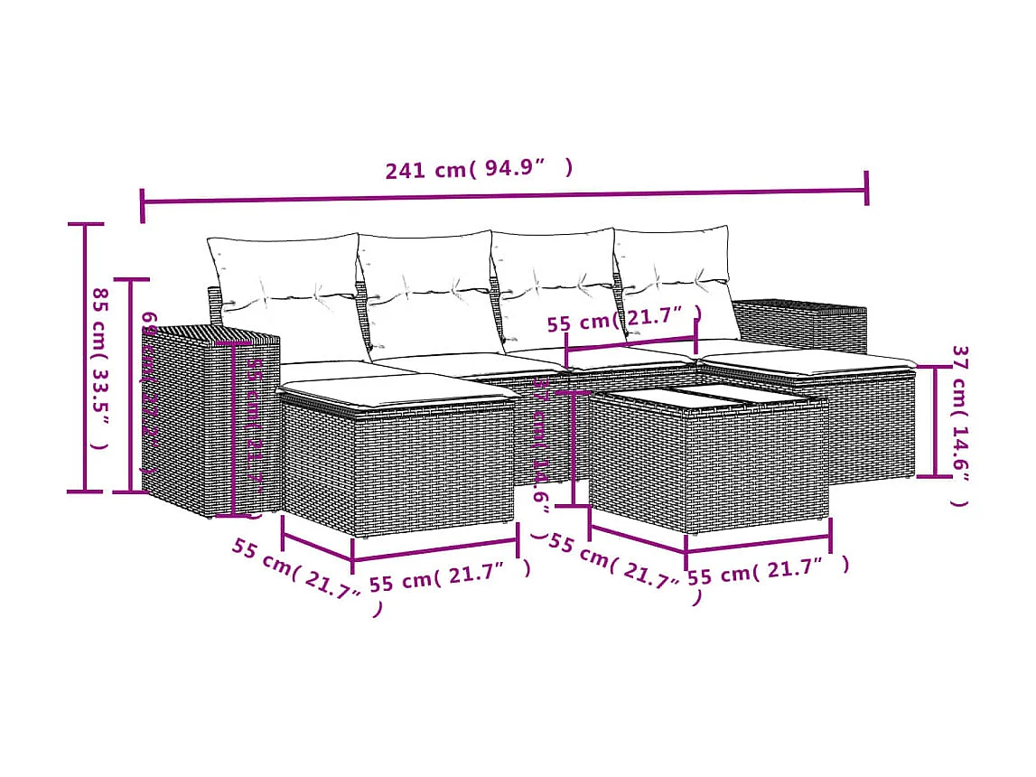 Salon de jardin avec coussins 7 pcs gris résine tressée