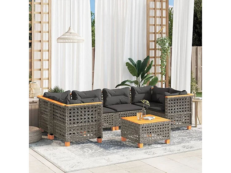 Salon de jardin avec coussins 7 pcs gris résine tressée