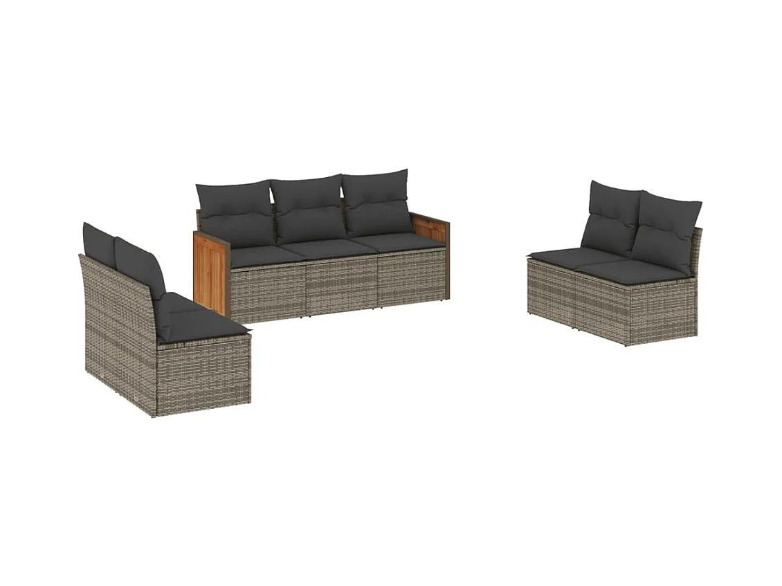 Salon de jardin avec coussins 7 pcs gris résine tressée