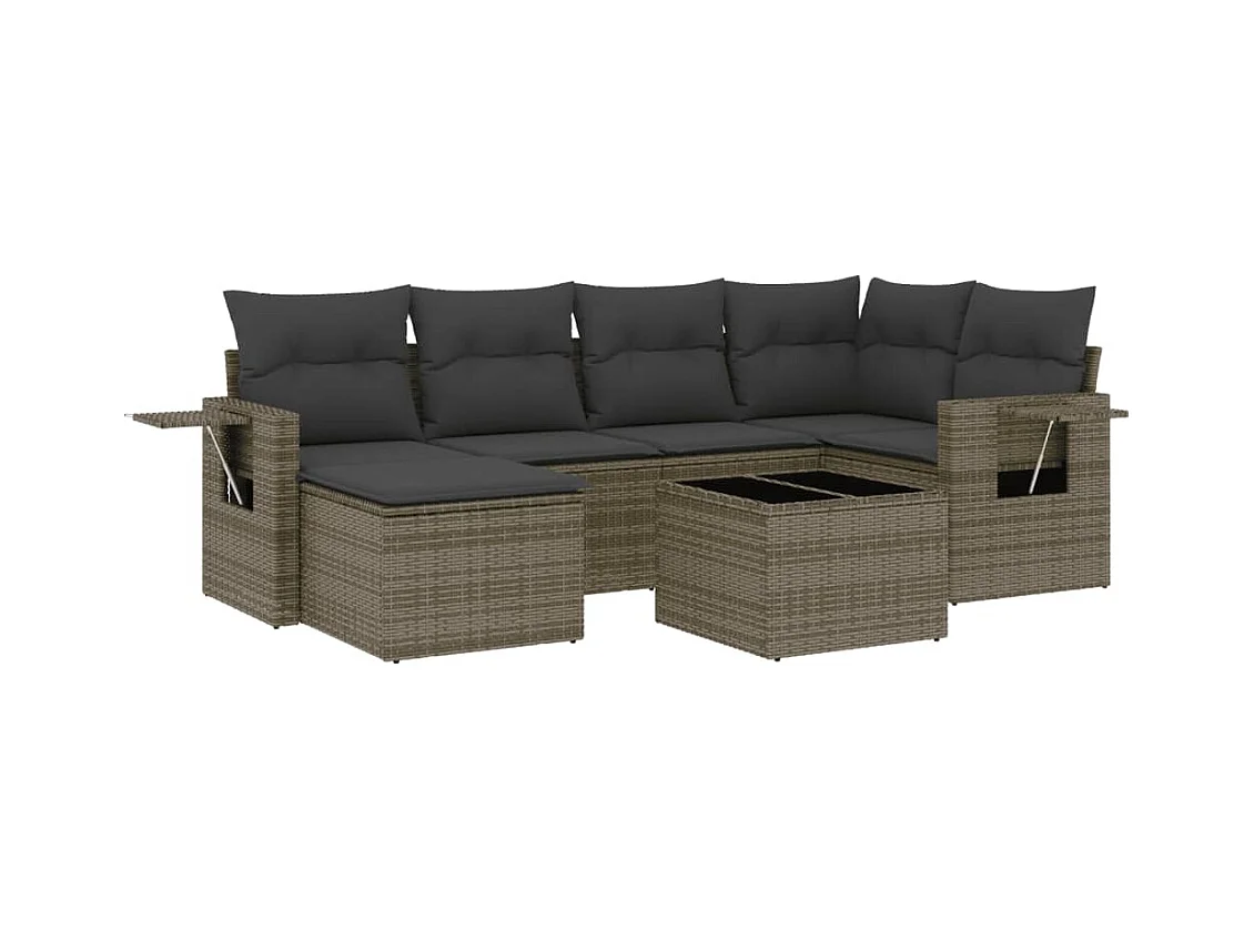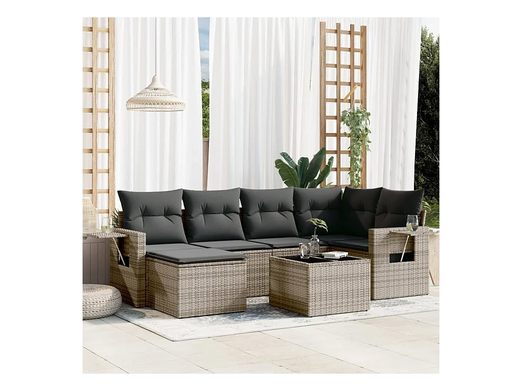 Salon de jardin avec coussins 7 pcs gris résine tressée