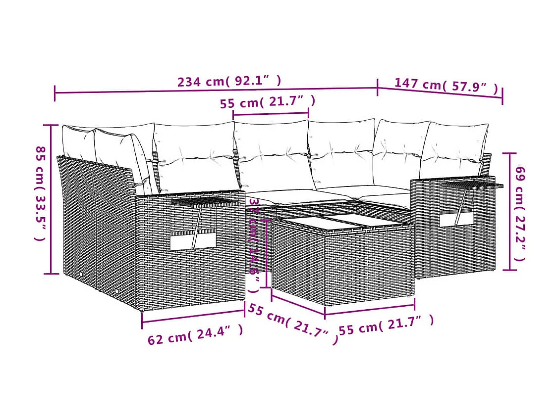 Salon de jardin avec coussins 7 pcs gris résine tressée