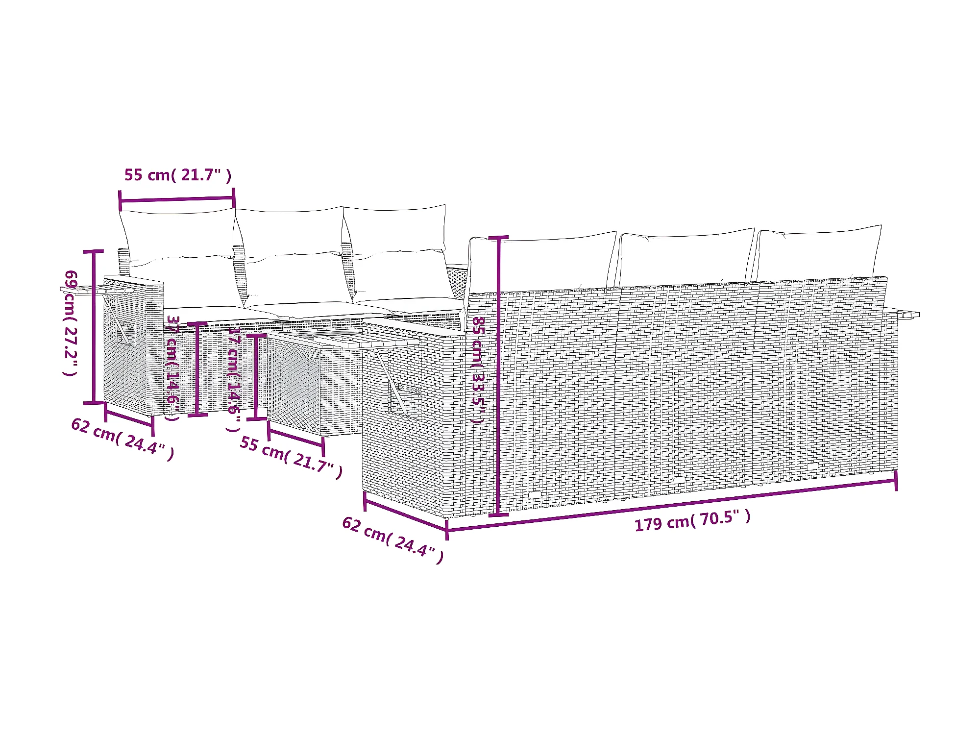 Salon de jardin avec coussins 7 pcs gris résine tressée