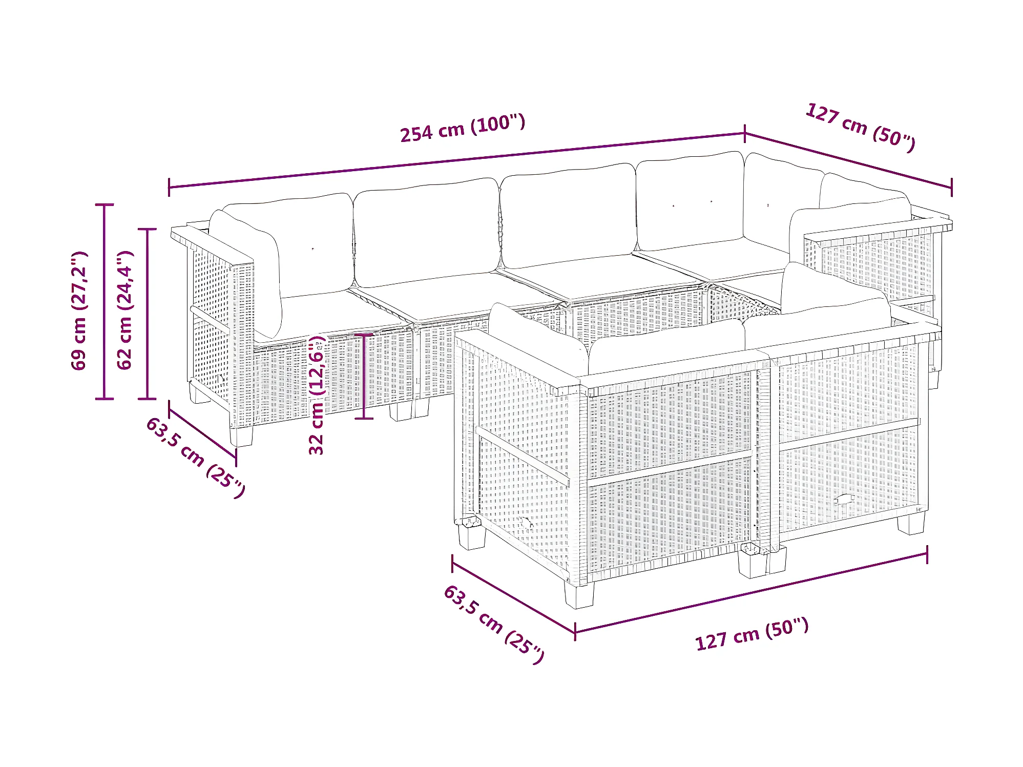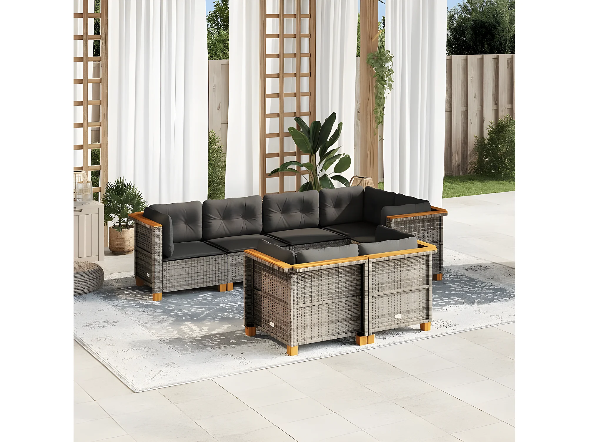 Salon de jardin avec coussins 7 pcs gris résine tressée