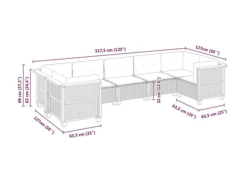 Salon de jardin avec coussins 7 pcs gris résine tressée
