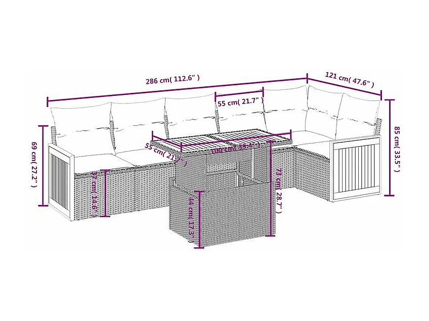 Salon de jardin avec coussins 7 pcs gris résine tressée