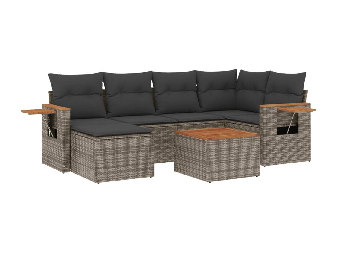 Salon de jardin avec coussins 7 pcs gris résine tressée