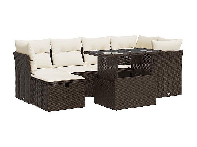 Salon de jardin avec coussins 7 pcs marron résine tressée