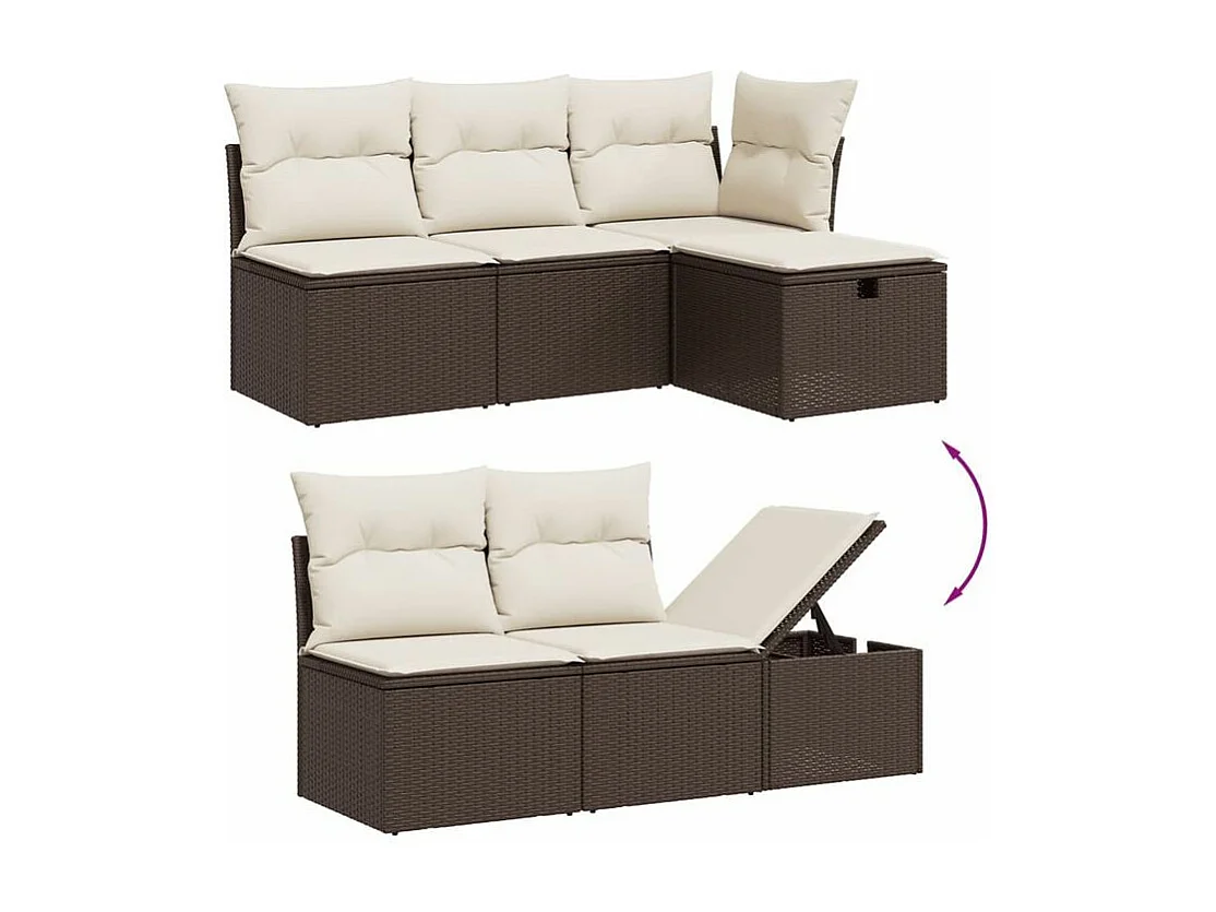 Salon de jardin avec coussins 7 pcs marron résine tressée
