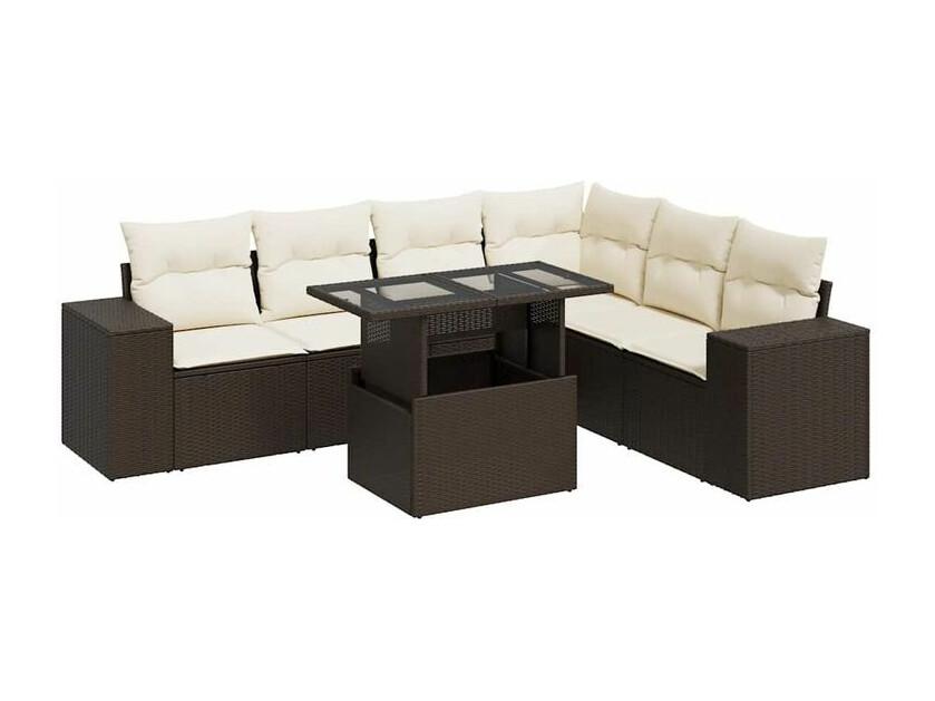 Salon de jardin avec coussins 7 pcs marron résine tressée