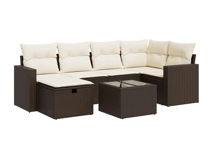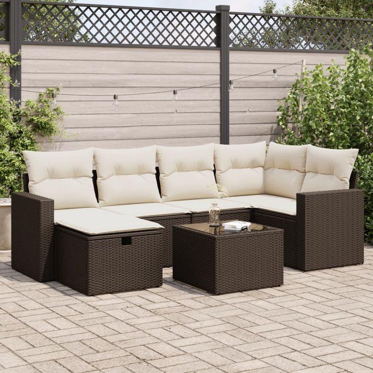 Salon de jardin avec coussins 7 pcs marron résine tressée