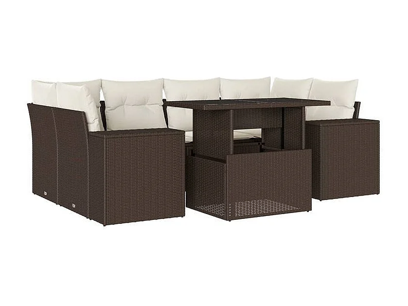 Salon de jardin avec coussins 7 pcs marron résine tressée