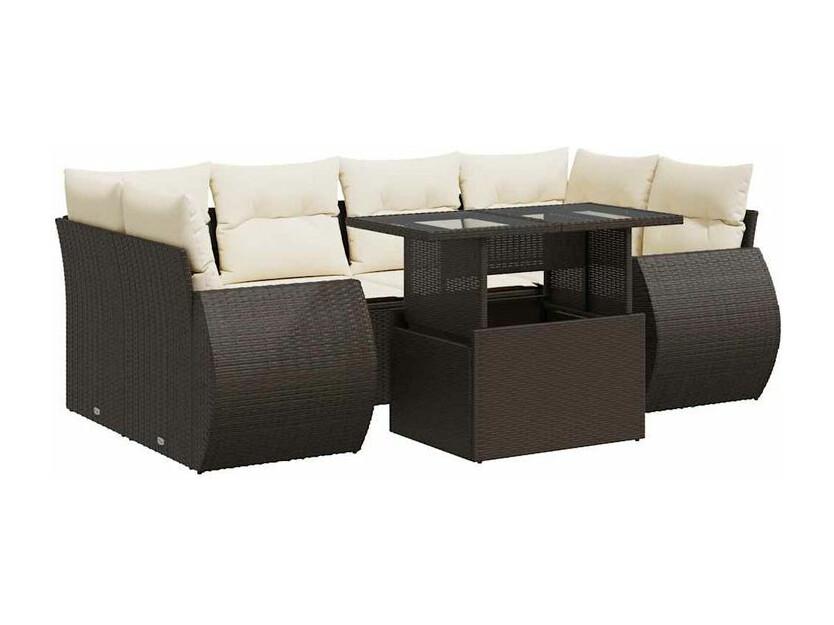 Salon de jardin avec coussins 7 pcs marron résine tressée