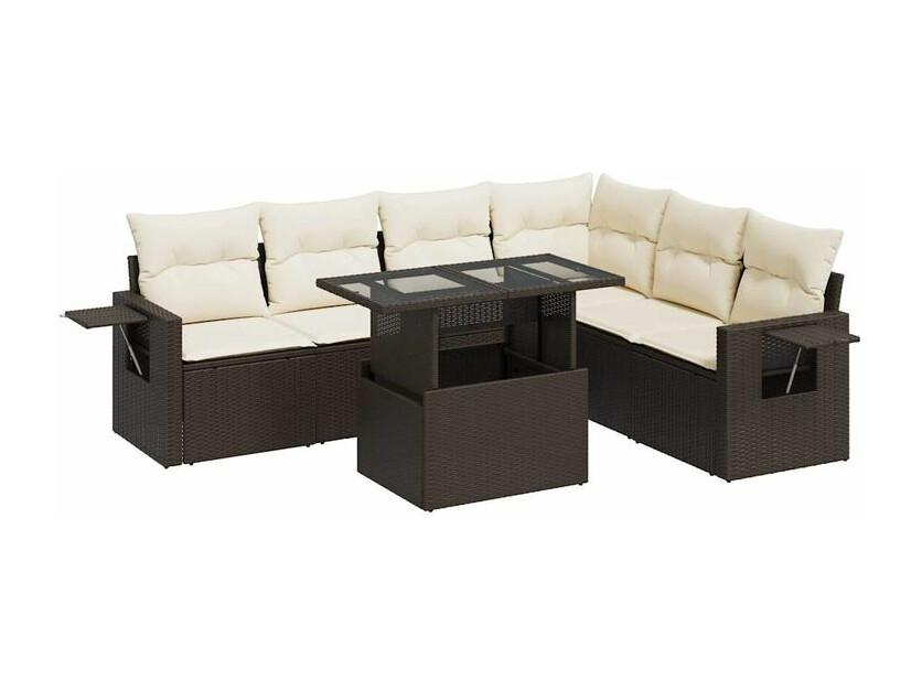 Salon de jardin avec coussins 7 pcs marron résine tressée