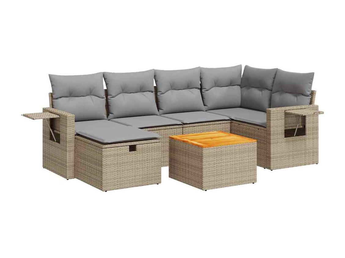 Salon de jardin avec coussins 7 pièces beige résine tressée