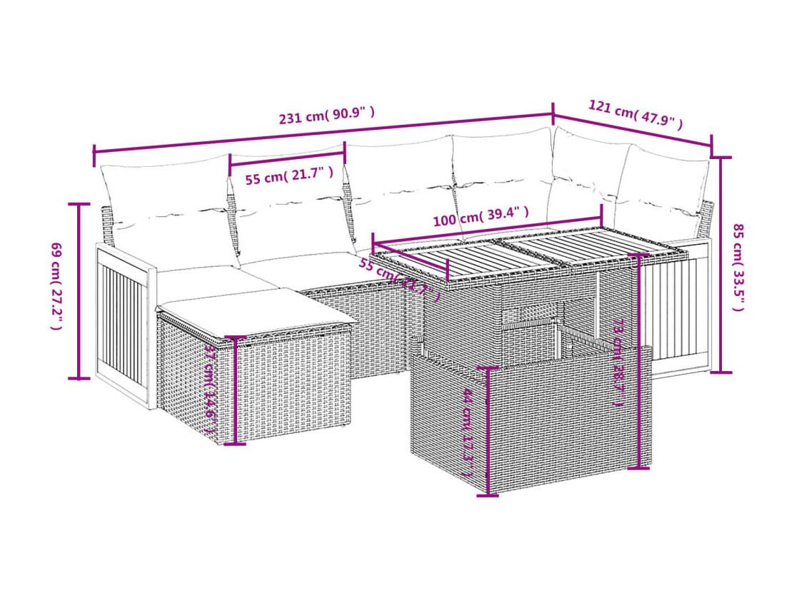 Salon de jardin avec coussins 7 pièces beige résine tressée