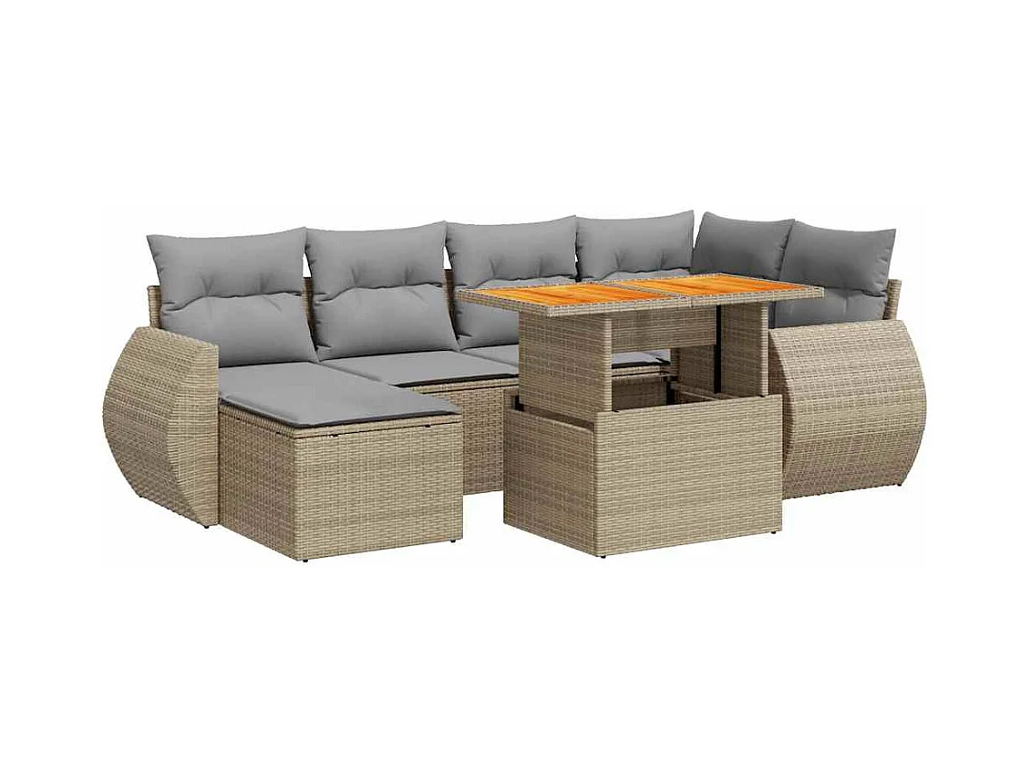 Salon de jardin avec coussins 7 pièces beige résine tressée