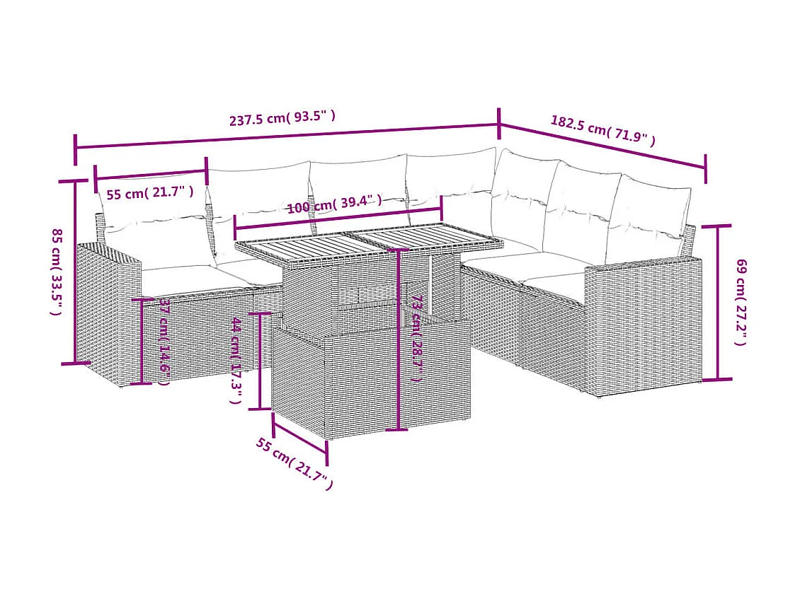 Salon de jardin avec coussins 7 pièces beige résine tressée