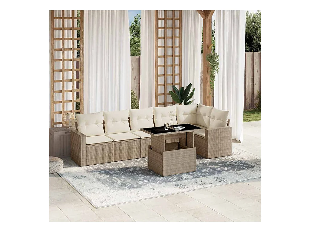 Salon de jardin avec coussins 7 pièces beige résine tressée