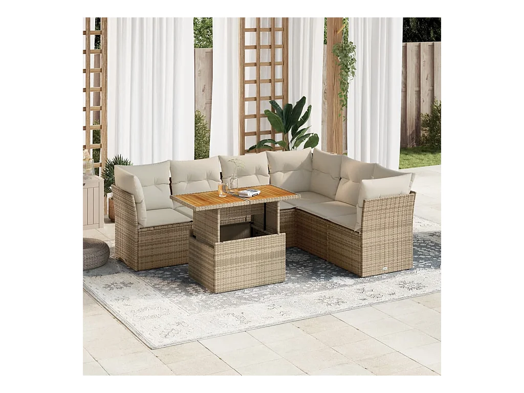 Salon de jardin avec coussins 7 pièces beige résine tressée