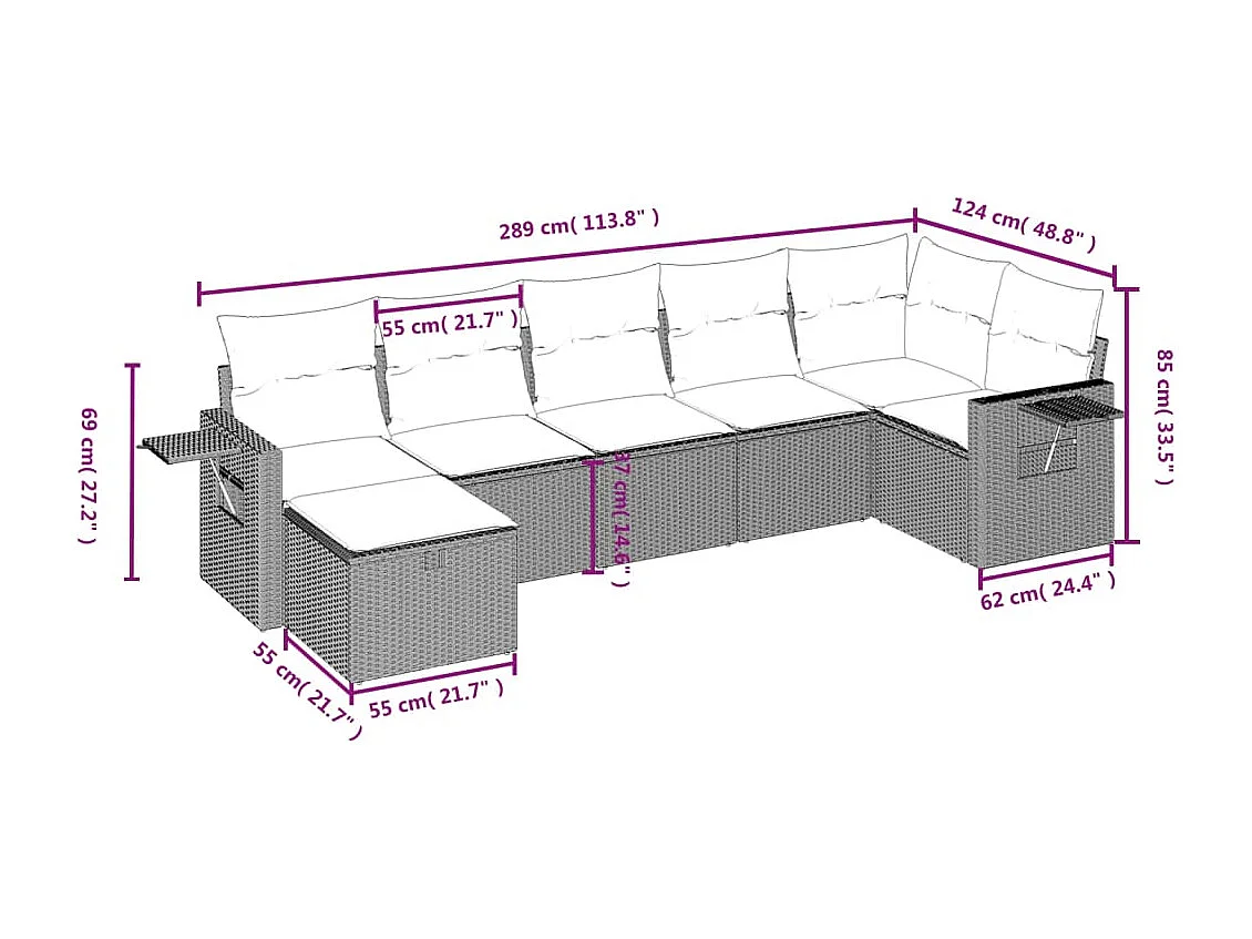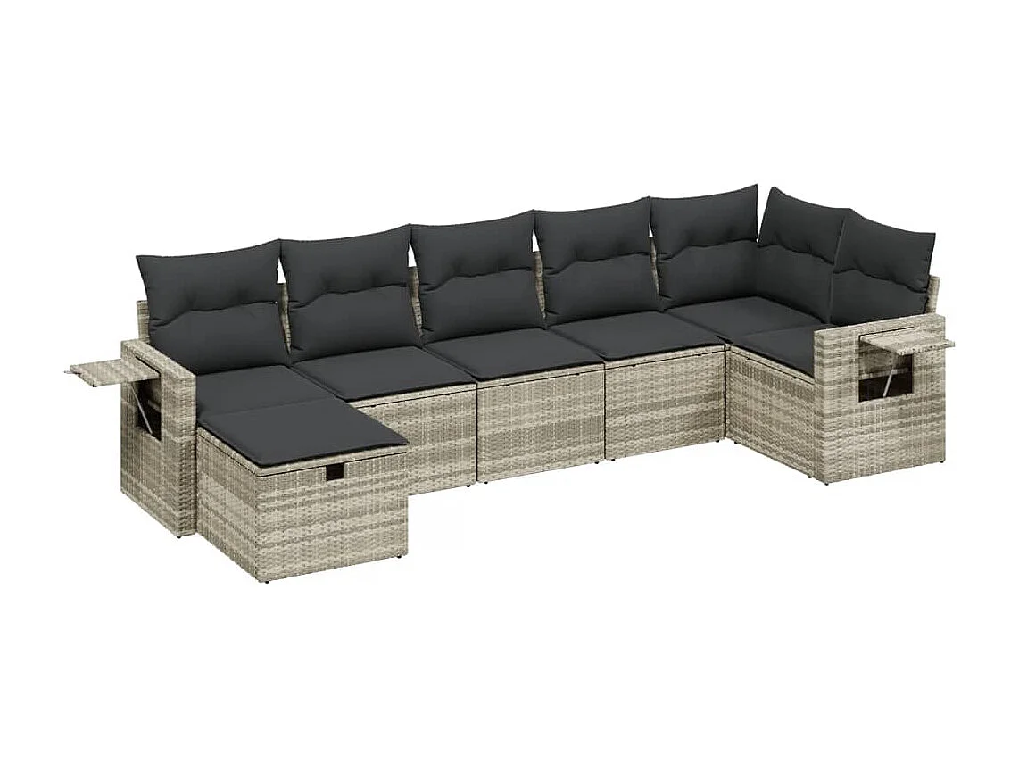 Salon de jardin avec coussins 7 pièces gris clair résine tressée