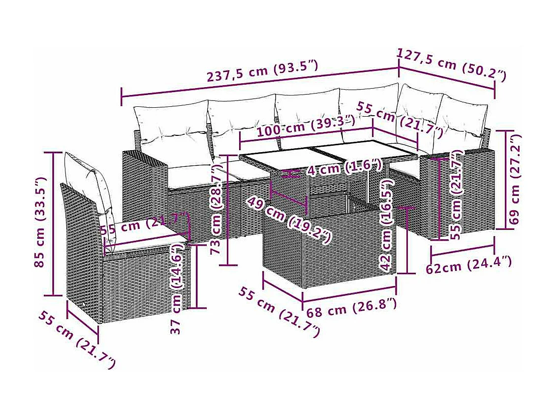 Salon de jardin avec coussins 7 pièces gris clair résine tressée