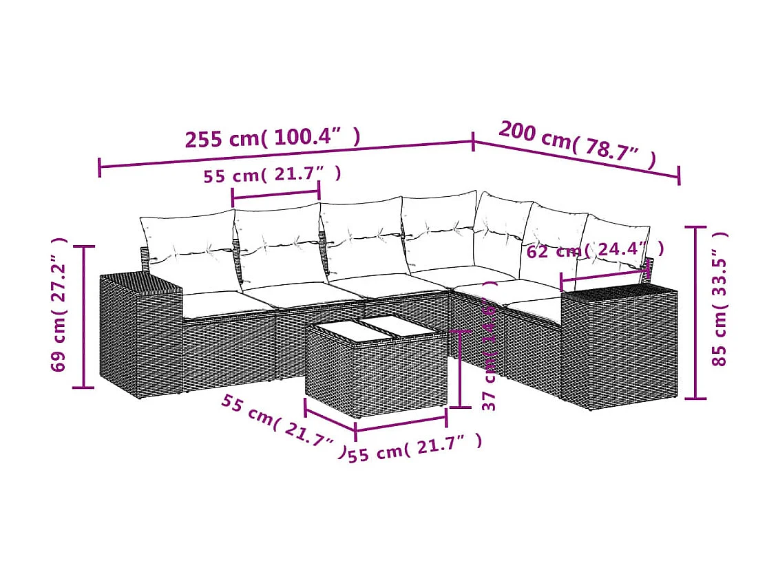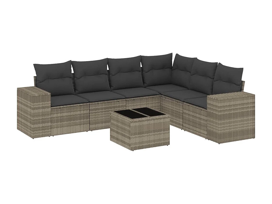 Salon de jardin avec coussins 7 pièces gris clair résine tressée