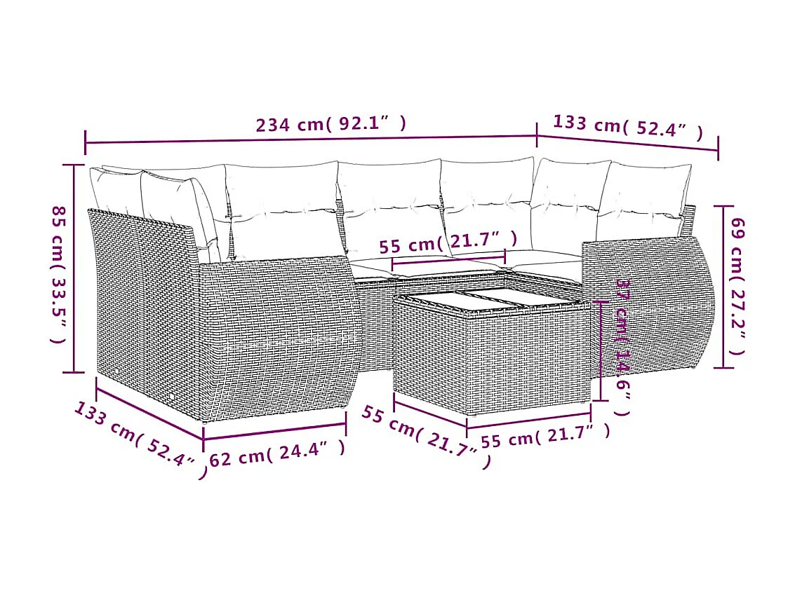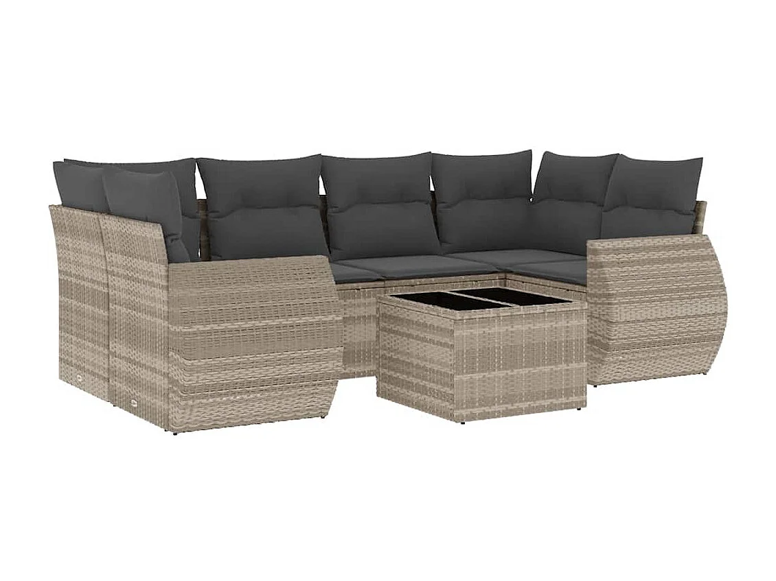 Salon de jardin avec coussins 7 pièces gris clair résine tressée