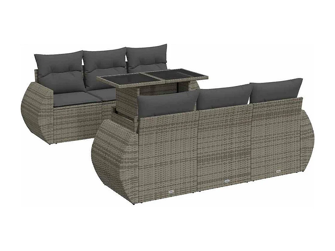 Salon de jardin avec coussins 7 pièces gris résine tressée