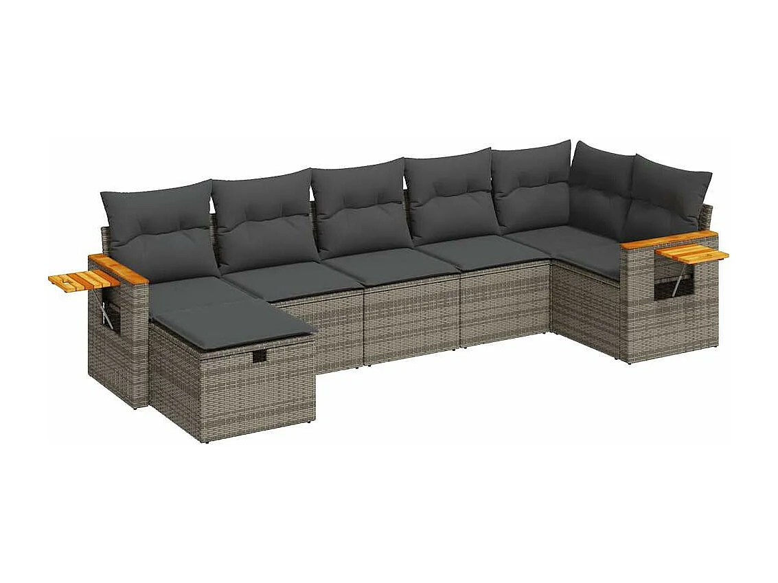 Salon de jardin avec coussins 7 pièces gris résine tressée