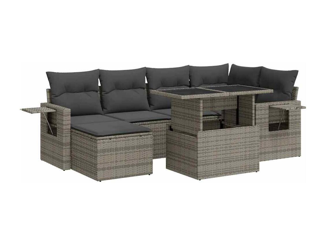Salon de jardin avec coussins 7 pièces gris résine tressée