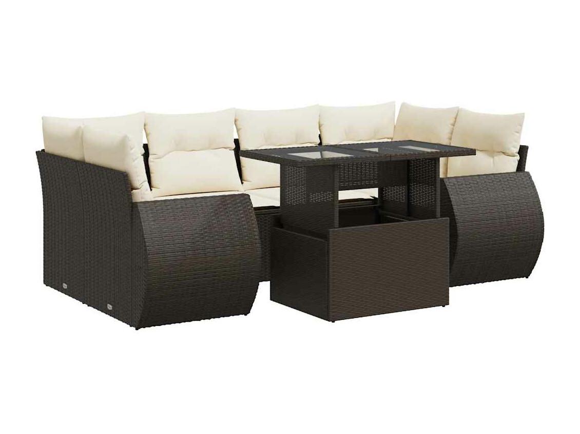 Salon de jardin avec coussins 7 pièces marron résine tressée