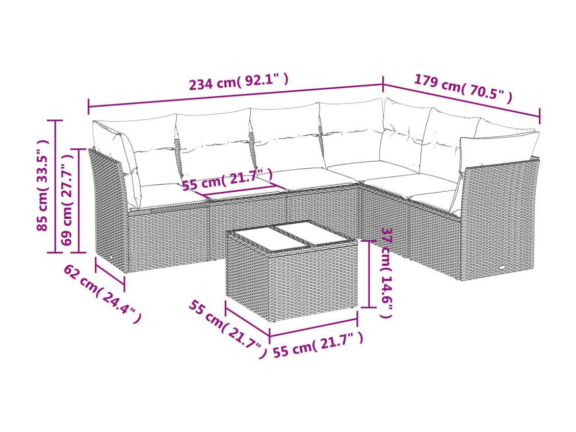Salon de jardin avec coussins 7 pièces marron résine tressée