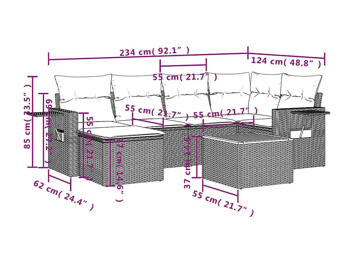 Salon de jardin avec coussins 7pcs mélange beige résine tressée