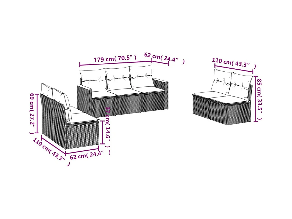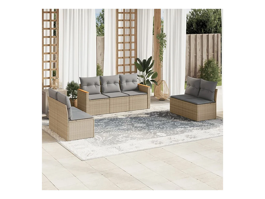 Salon de jardin avec coussins 7pcs mélange beige résine tressée