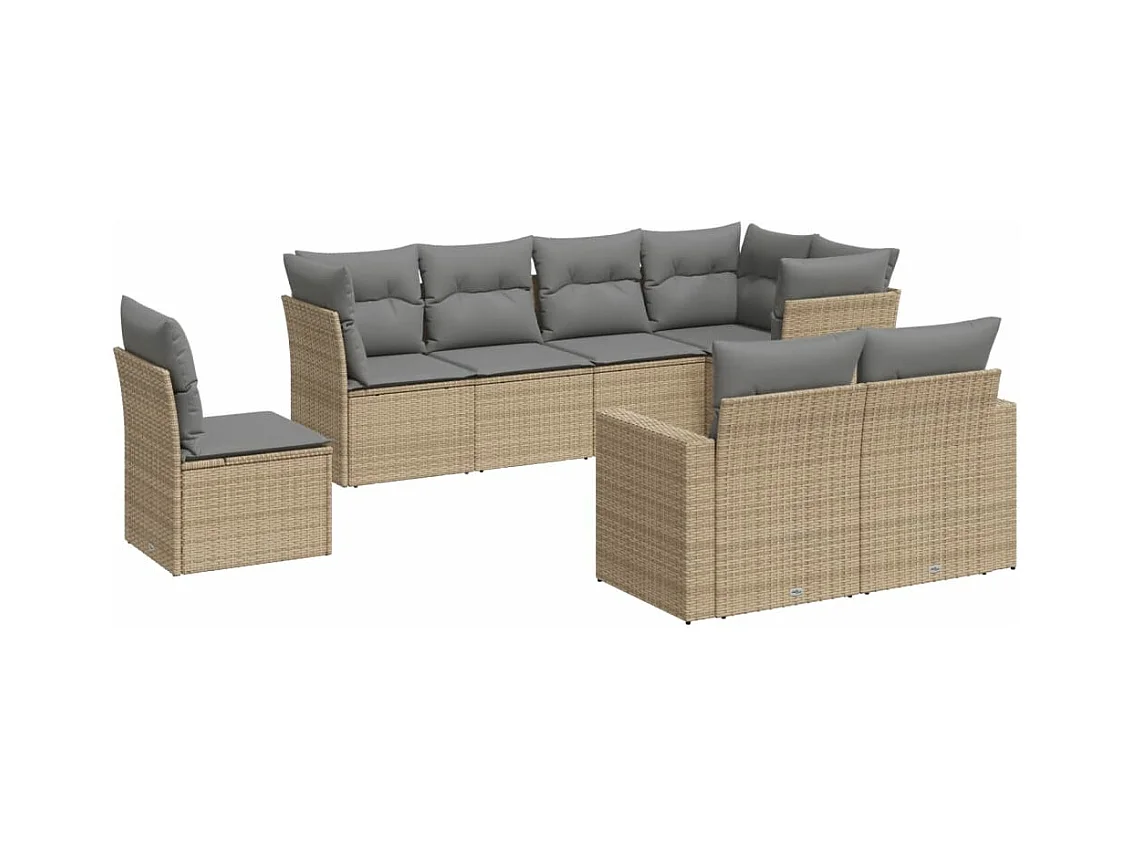 Salon de jardin avec coussins 8 pcs beige résine tressée