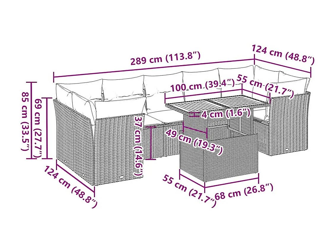 Salon de jardin avec coussins 8 pcs beige résine tressée