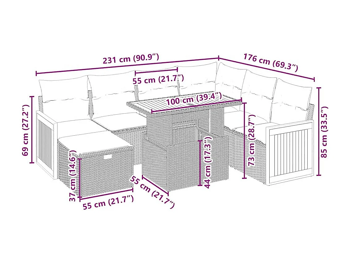 Salon de jardin avec coussins 8 pcs beige résine tressée