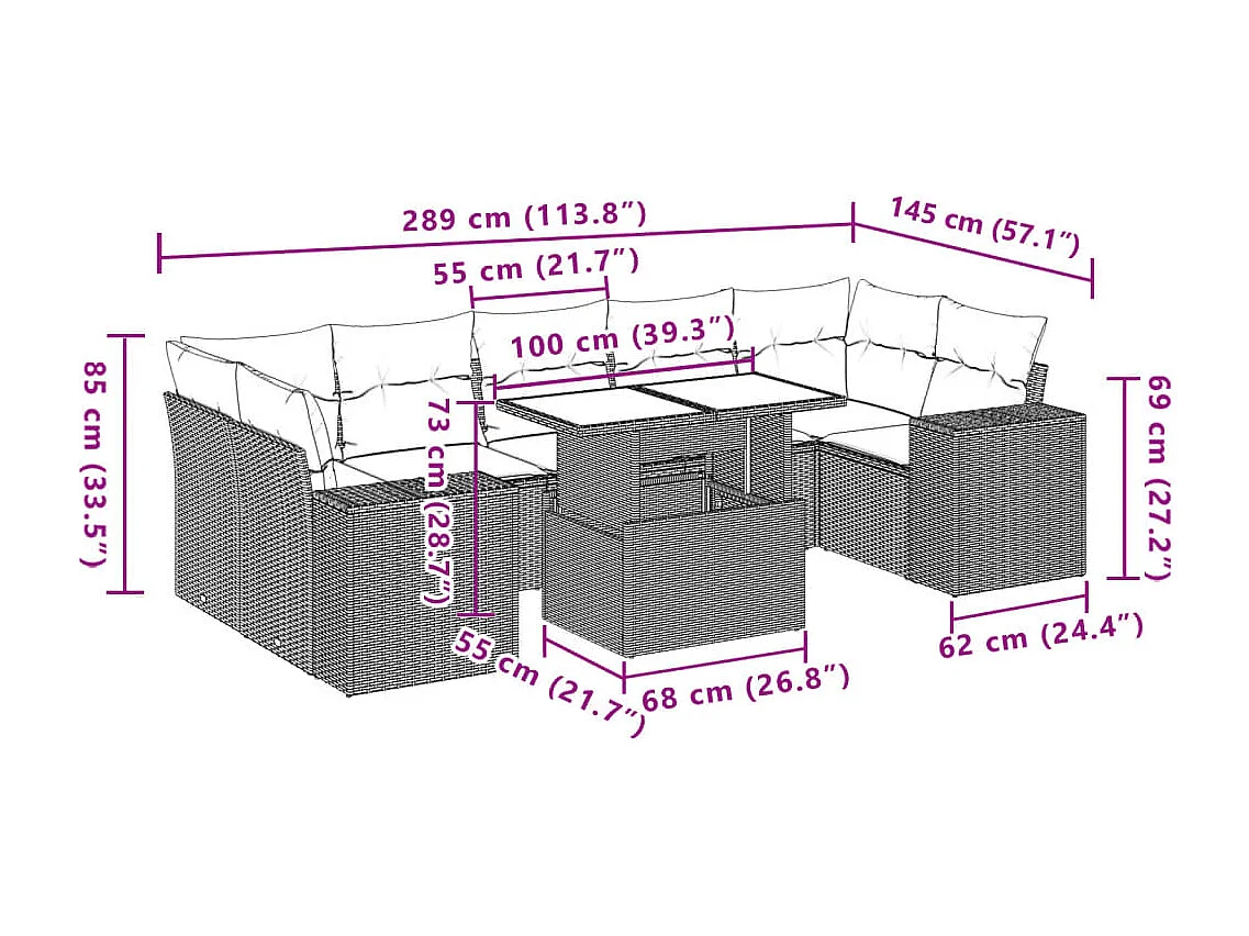 Salon de jardin avec coussins 8 pcs beige résine tressée