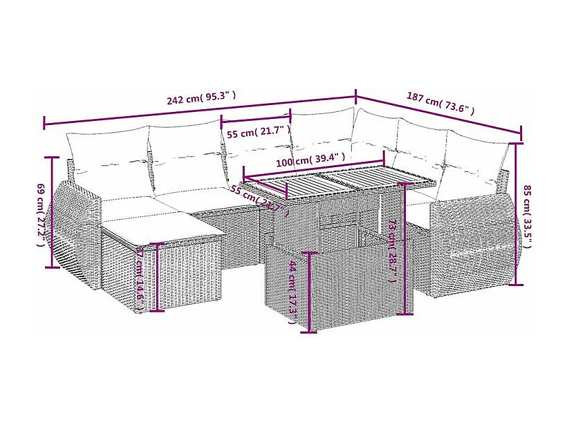 Salon de jardin avec coussins 8 pcs beige résine tressée