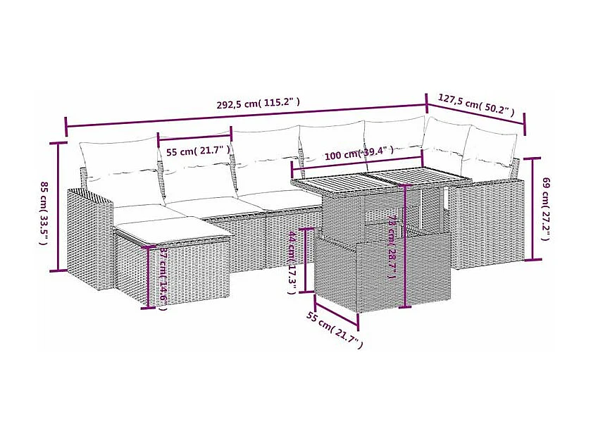 Salon de jardin avec coussins 8 pcs beige résine tressée