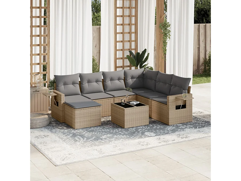 Salon de jardin avec coussins 8 pcs beige résine tressée