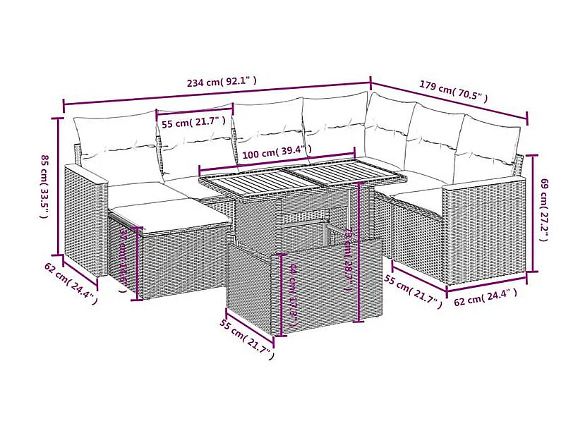 Salon de jardin avec coussins 8 pcs beige résine tressée
