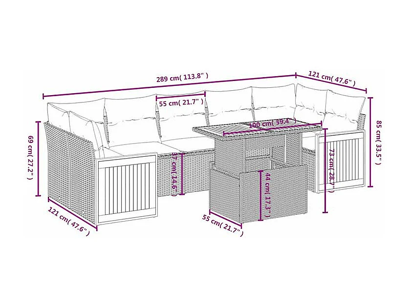 Salon de jardin avec coussins 8 pcs beige résine tressée